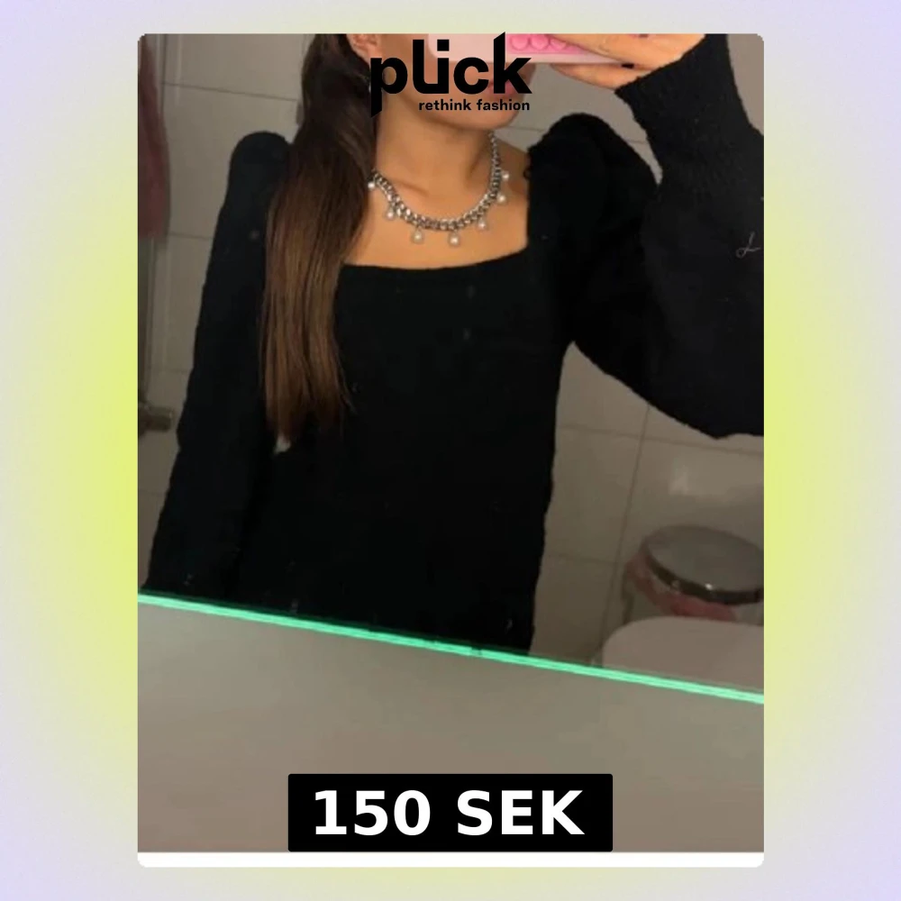 Säljer en svart stickad topp med fyrkantig ringning och puffärmar. Toppen har lång ärm och en tight passform som ger en snygg siluett. Perfekt att styla med smycken för en trendig look.