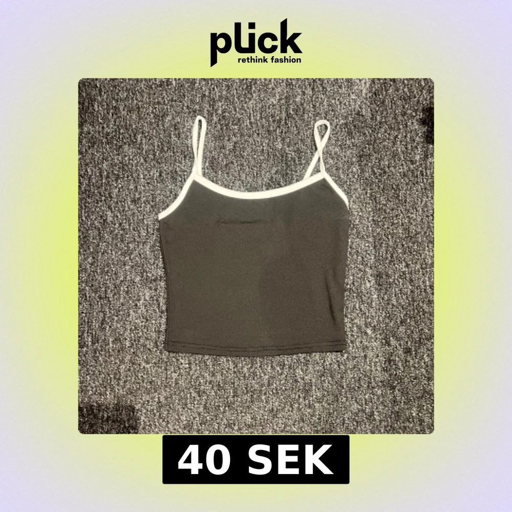 Säljer en svart croppad linnetopp med tunna vita axelband och vita kanter. Toppen har en enkel och stilren design, perfekt att matcha med jeans eller kjol.
