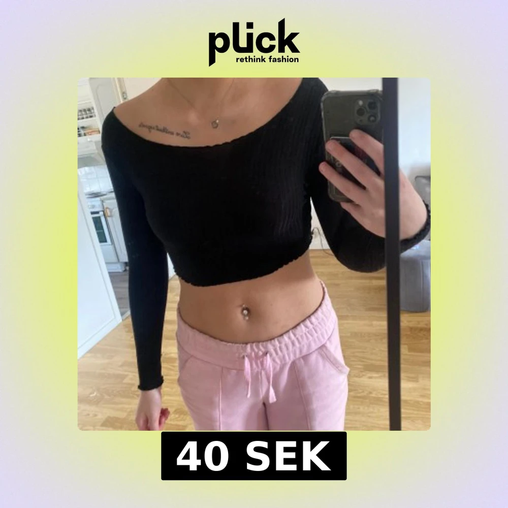 Säljer en svart ribbad topp. Ingen lapp, men är i storlek XS. (För liten på mig därför den ser mer off shoulder ut)