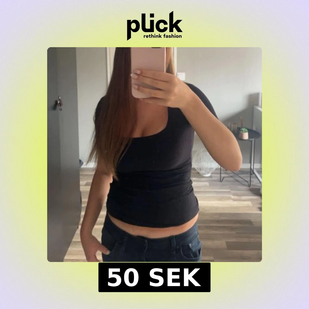 En svart, tight topp med korta ärmar och snygg fyrkantig ringning. Enkel och stilren design som passar perfekt till jeans eller kjol. Jätte skönt material!