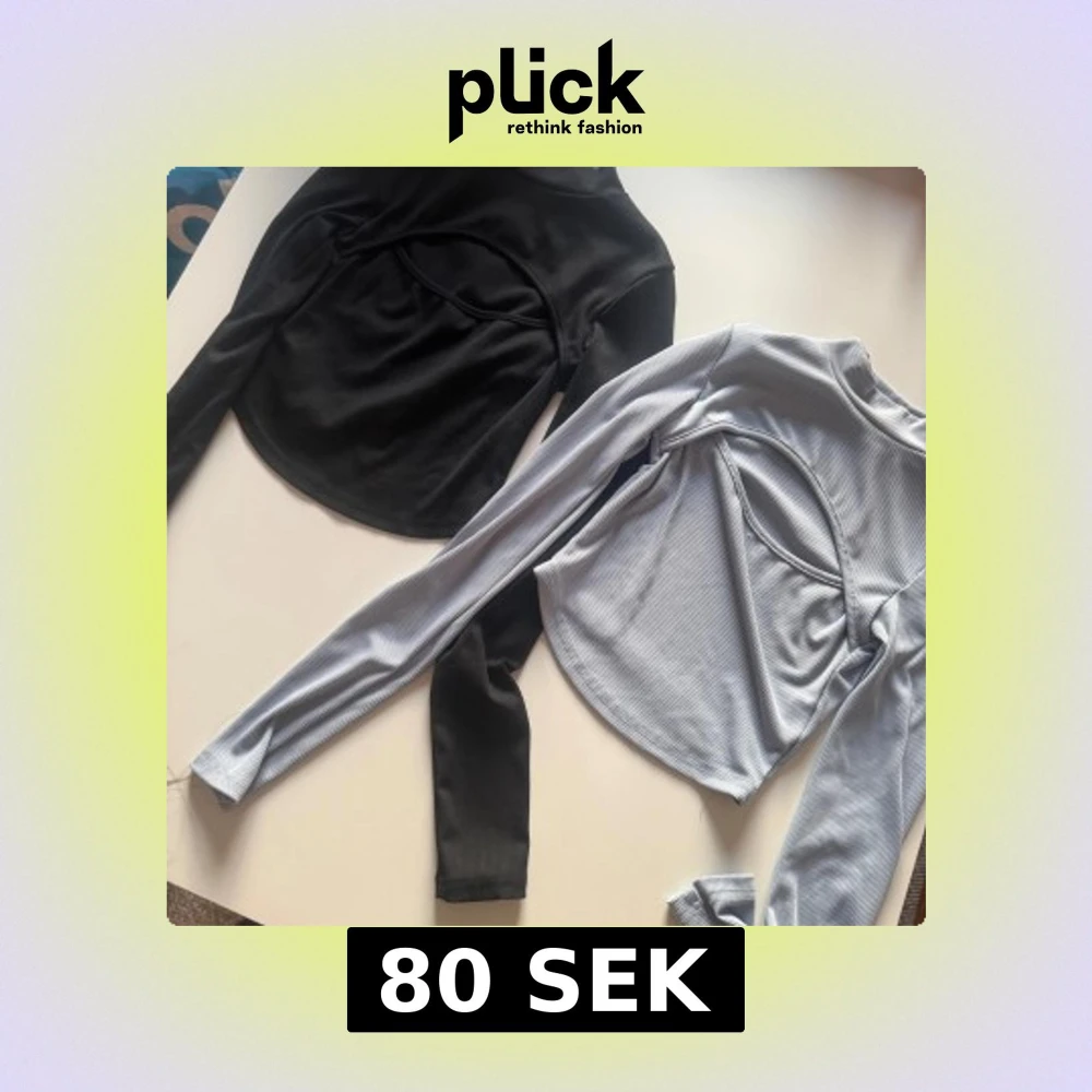 Två långärmade croppade toppar i blå och svart med unik cut-out detalj över bröstet.