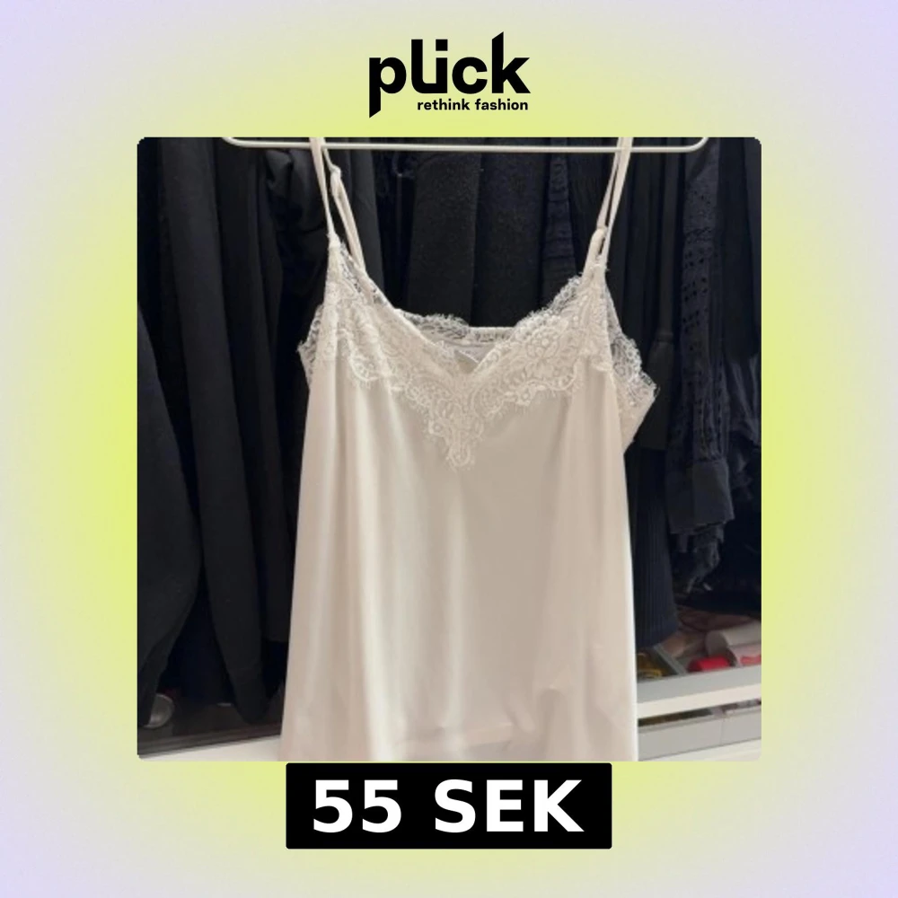 Säljer ett vitt linne med tunna axelband och vacker spetsdetalj längs urringningen. Perfekt att styla under en kavaj eller till jeans för en enkel men snygg look.