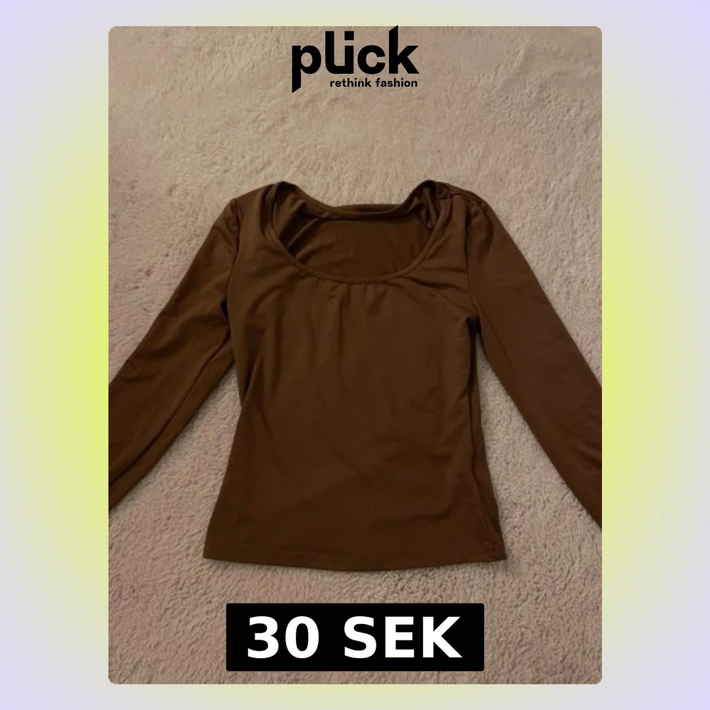 Enkel brun långärmad topp i stretchigt träningsmaterial med rundad halsringning. Bekväm och lätt att matcha med allt från jeans till träningsbyxor. Endast lätt använd.