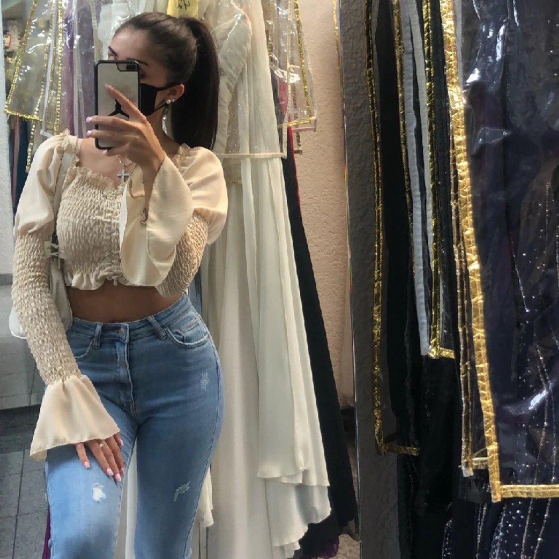 Beige topp med fina detaljer, köpt i Tyskland, knappt använd!