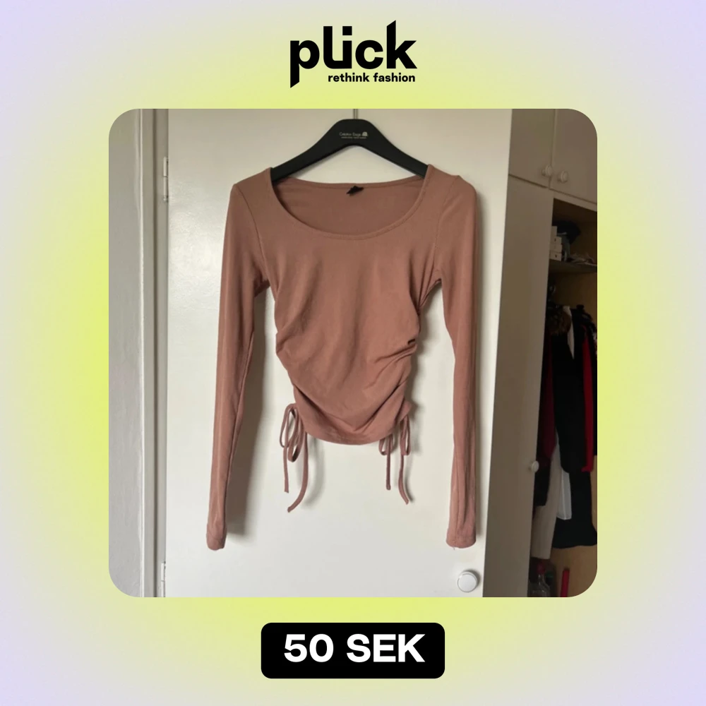 Säljer en superfin beige långärmad topp med knyt i sidorna. Perfekt för både vardag och fest! Toppen har en åtsittande passform och är gjord i ett mjukt material som känns skönt mot huden. Den har en rund halsringning och är i mycket bra skick.