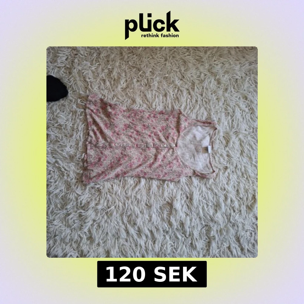Supersöt ärmlös linnetopp med blommigt mönster i rosa och beige. Toppen har ribbad struktur och knappar framtill som snygg detalj. Perfekt för varma dagar och enkel att matcha med jeans eller kjol.