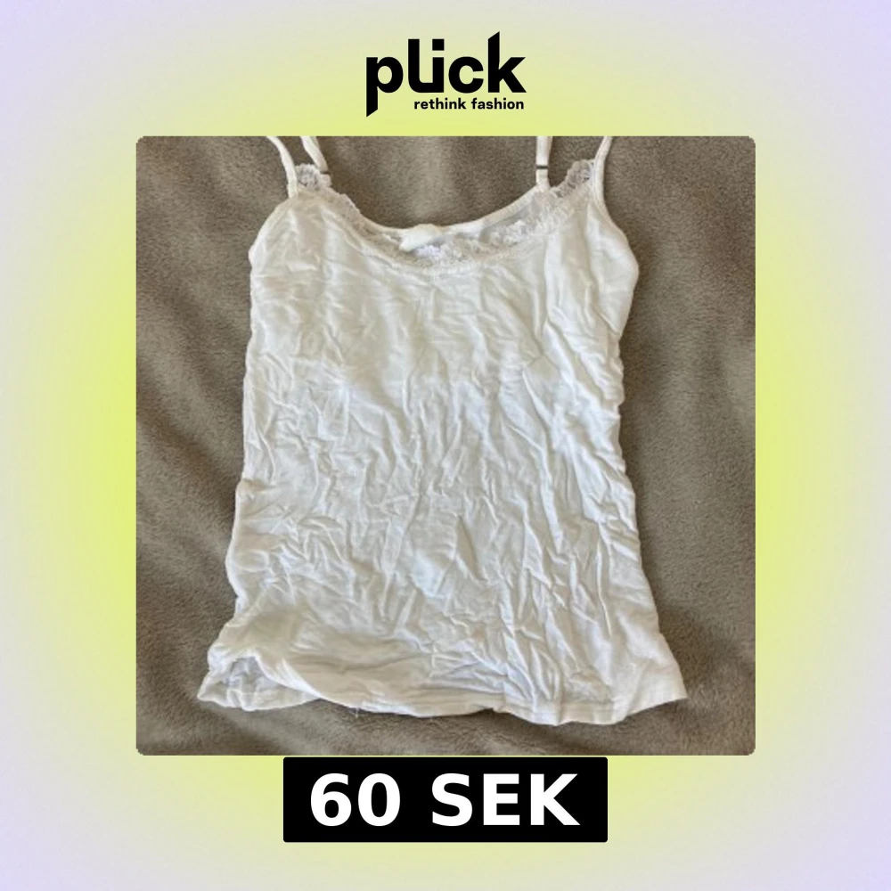 Supersöt vit linnetopp från Stories i storlek XS. Toppen har tunna axelband och en fin spetskant upptill som ger en romantisk vibe. Perfekt att styla under en skjorta eller bara som den är under varma dagar.