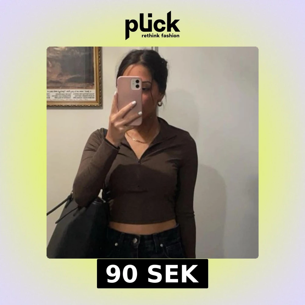 Snygg brun croppad topp med lång ärm och v-ringning. Perfekt för en trendig look. Passar bra till både jeans och kjol.
