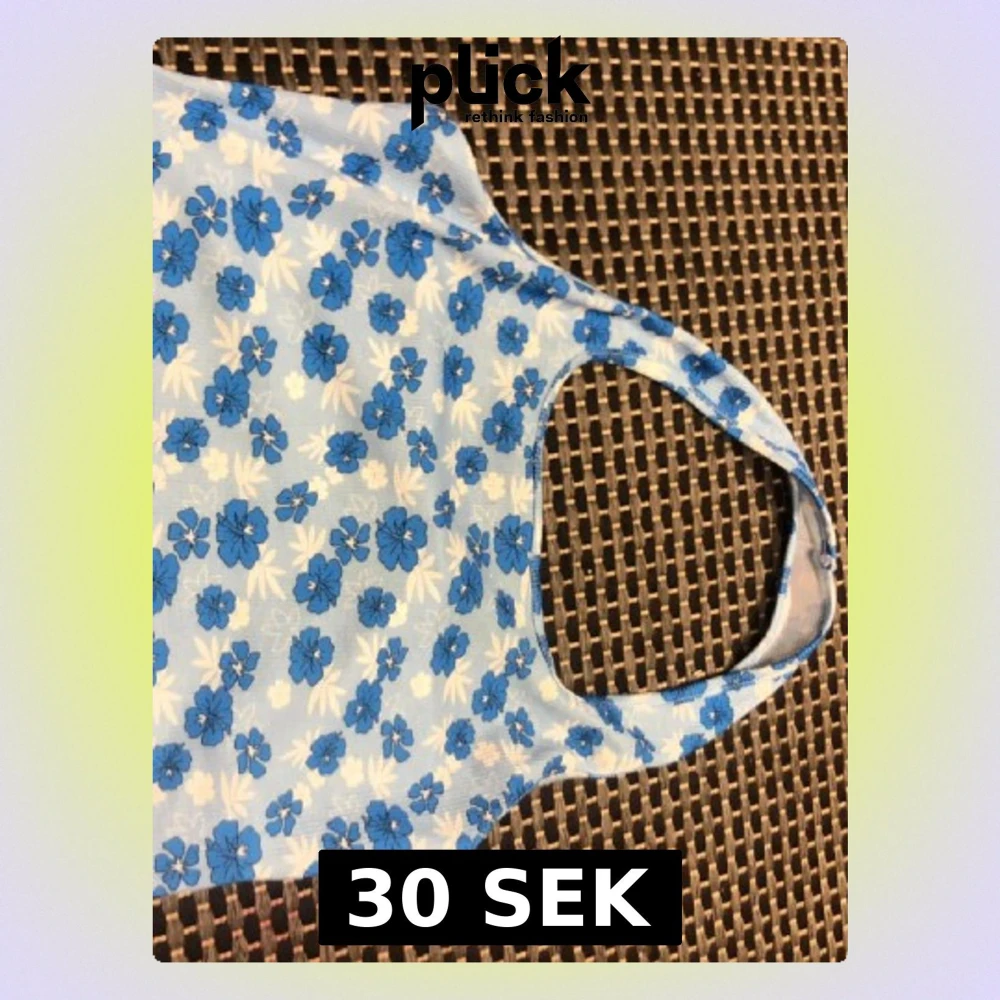 Söt linnetopp med blåa blommor på vit botten. Toppen har ärmlös design med breda axelband och rundad halsringning. Perfekt för varma dagar och ger en fräsch sommarkänsla. Materialet känns lätt och luftigt.