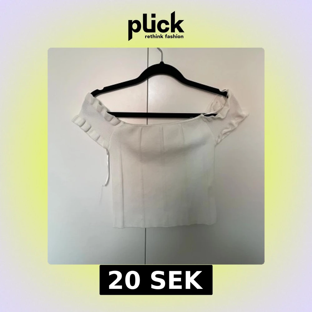 Vit off shoulder tröja från Dilvin i strl XS. Använd fåtalet gånger. (Bandet som hänger ned är ett sånt som man kan hänga på galgen men som gått av)
