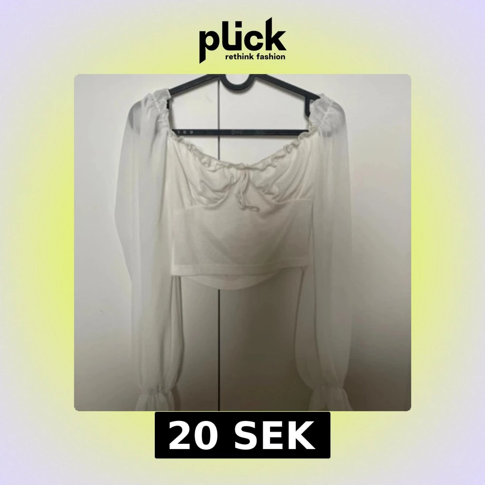 Säljer en vit offshoulder topp med långa, transparenta ärmar och knytning framtill. Toppen är croppad och är i fint skick
