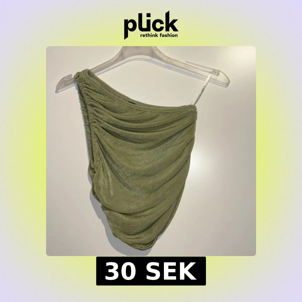 Säljer en snygg grön oneshoulder topp från SHEIN i storlek XS. Toppen har draperad design med rynkade detaljer längs axeln och sidan, vilket ger en cool och trendig look. Materialet är mjukt och har en lätt glansig finish som känns skönt mot huden.