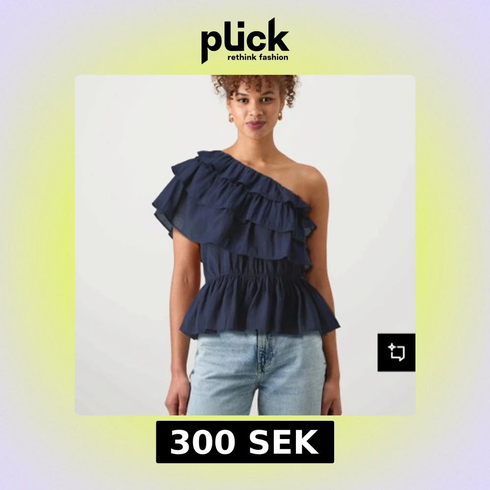 Säljer en super fin mörkblå topp med volanger💕helt oanvänd från Zalando. Storlek Xs petite