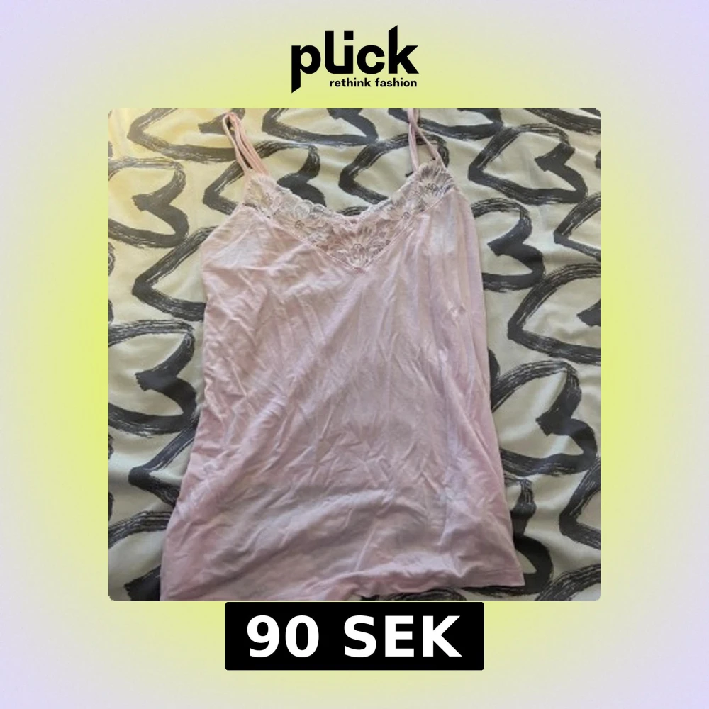 Säljer en ljusrosa linnetopp med tunna axelband och v-ringad hals. Toppen har en snygg spetsdetalj framtill som ger en romantisk vibe. Perfekt för dig som gillar mjuka färger och enkel stil. Materialet känns lätt och skönt mot huden.