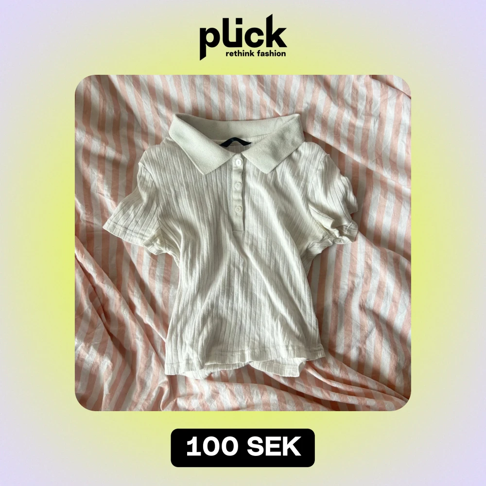 Säljer en söt vit ribbad polotopp med korta ärmar och knappar framtill. Perfekt för vår och sommar, och funkar både till vardags och lite finare tillfällen. Toppen är i bra skick och superbekväm att ha på sig. Säljer pga att den inte kommer till användning <3