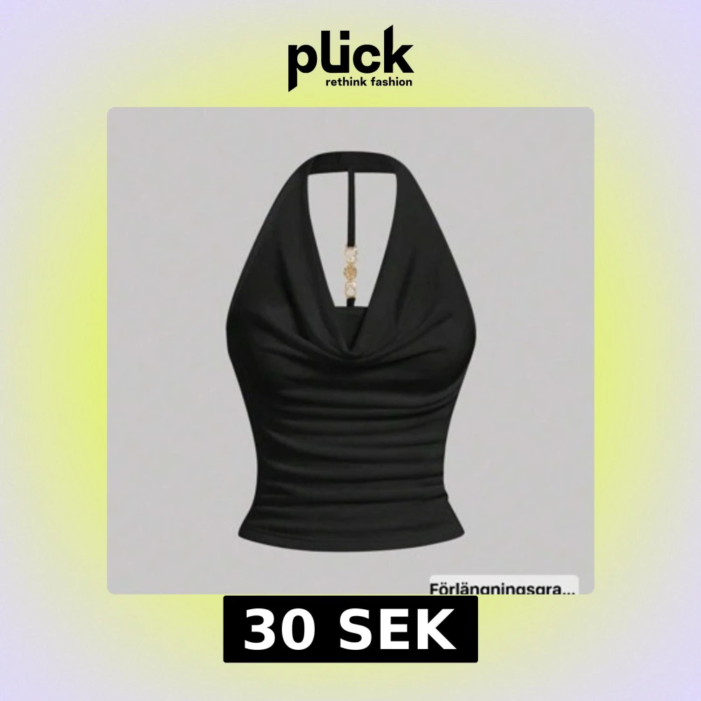 Snygg svart halterneck topp med draperad urringning och guldfärgad detalj i ryggen. Använd fåtal gånger under sommaren annars är den som ny🥰