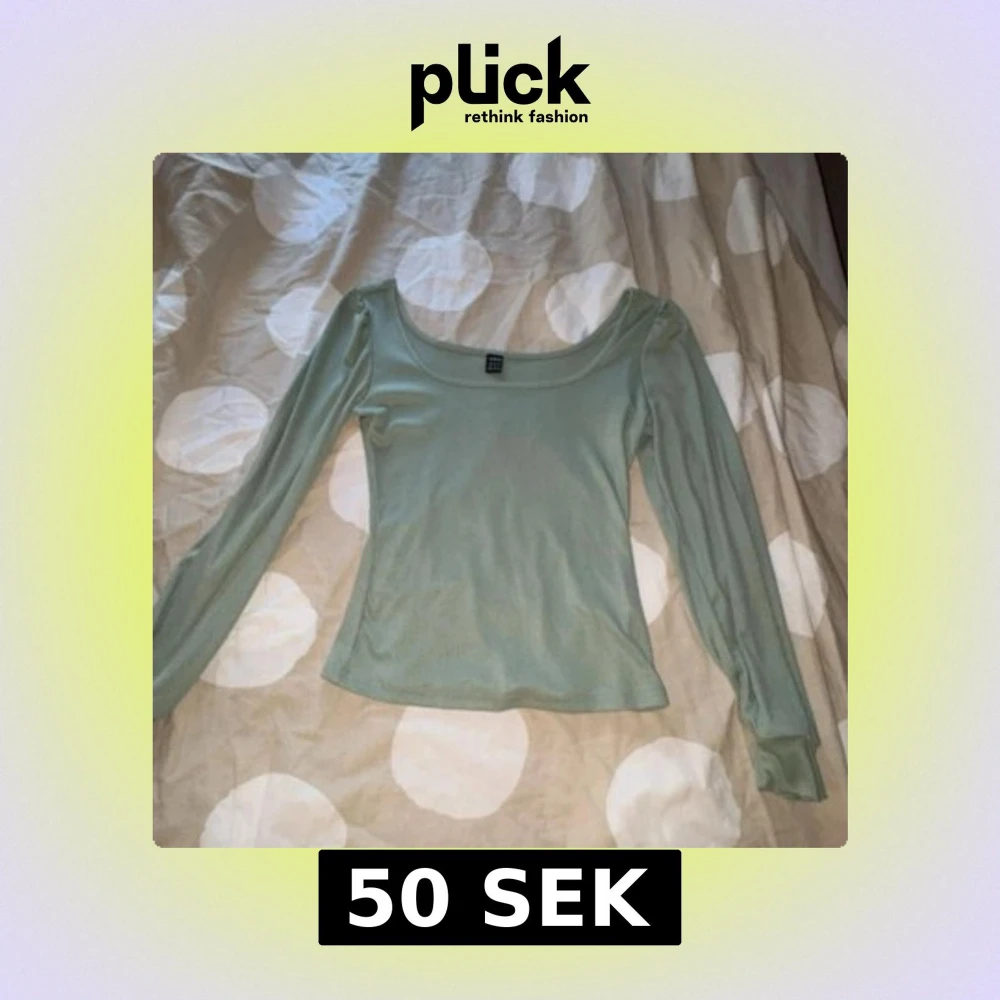 Snygg mintgrön topp från SHEIN med lång ärm och fyrkantig urringning. Toppen är ribbad och har en figurnära passform som framhäver siluetten. Perfekt att styla med jeans eller kjol för en trendig look.