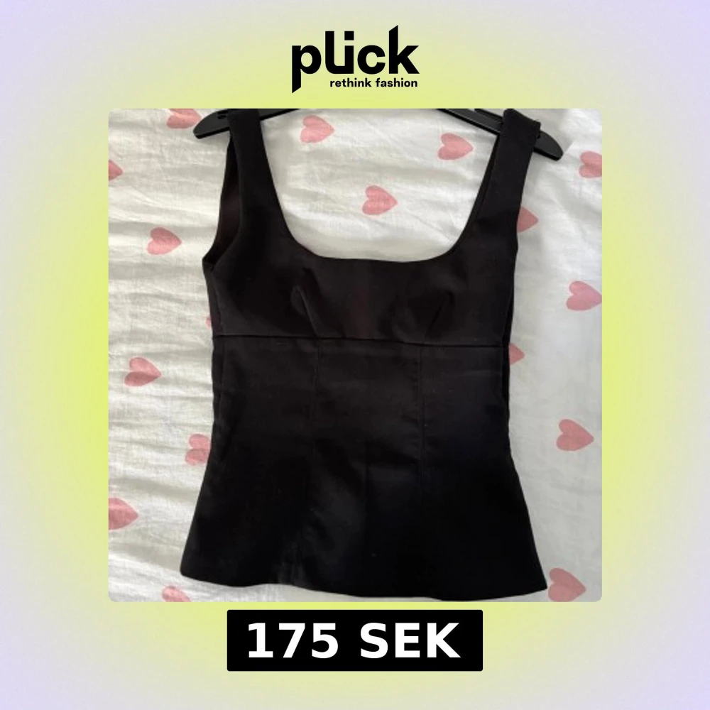 Snygg svart korsett-topp från H&M Divided i storlek XS. Toppen har breda axelband, markerade sömmar och en dold dragkedja i sidan. Figurnära passform och stilren look som passar till många outfits.🖤🖤