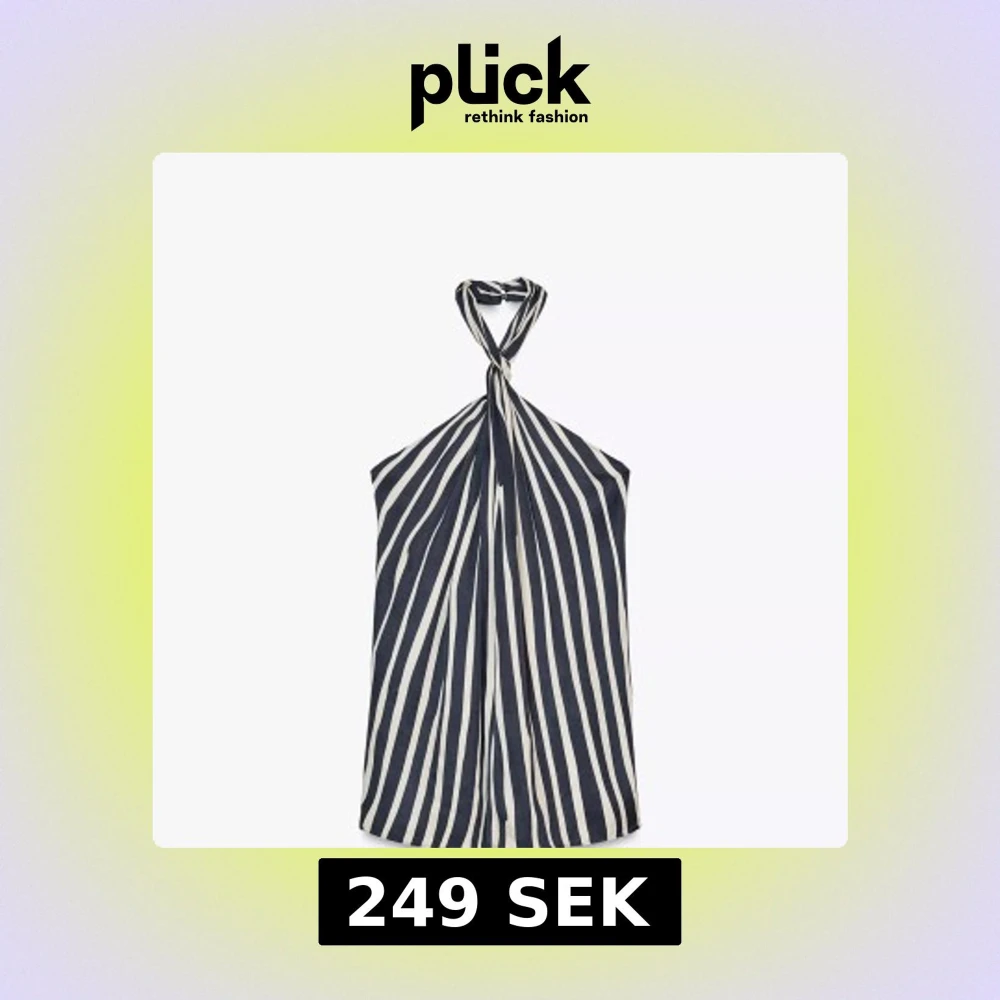 Snygg Ă€rmlös halterneck topp med svartvita diagonala rĂ€nder och knyt runt halsen. Luftig och lĂ€tt modell som ger en cool och trendig look. Perfekt för varma dagar nĂ€r du vill sticka ut lite extra!!đșHelt ny med prislappen kvar!!