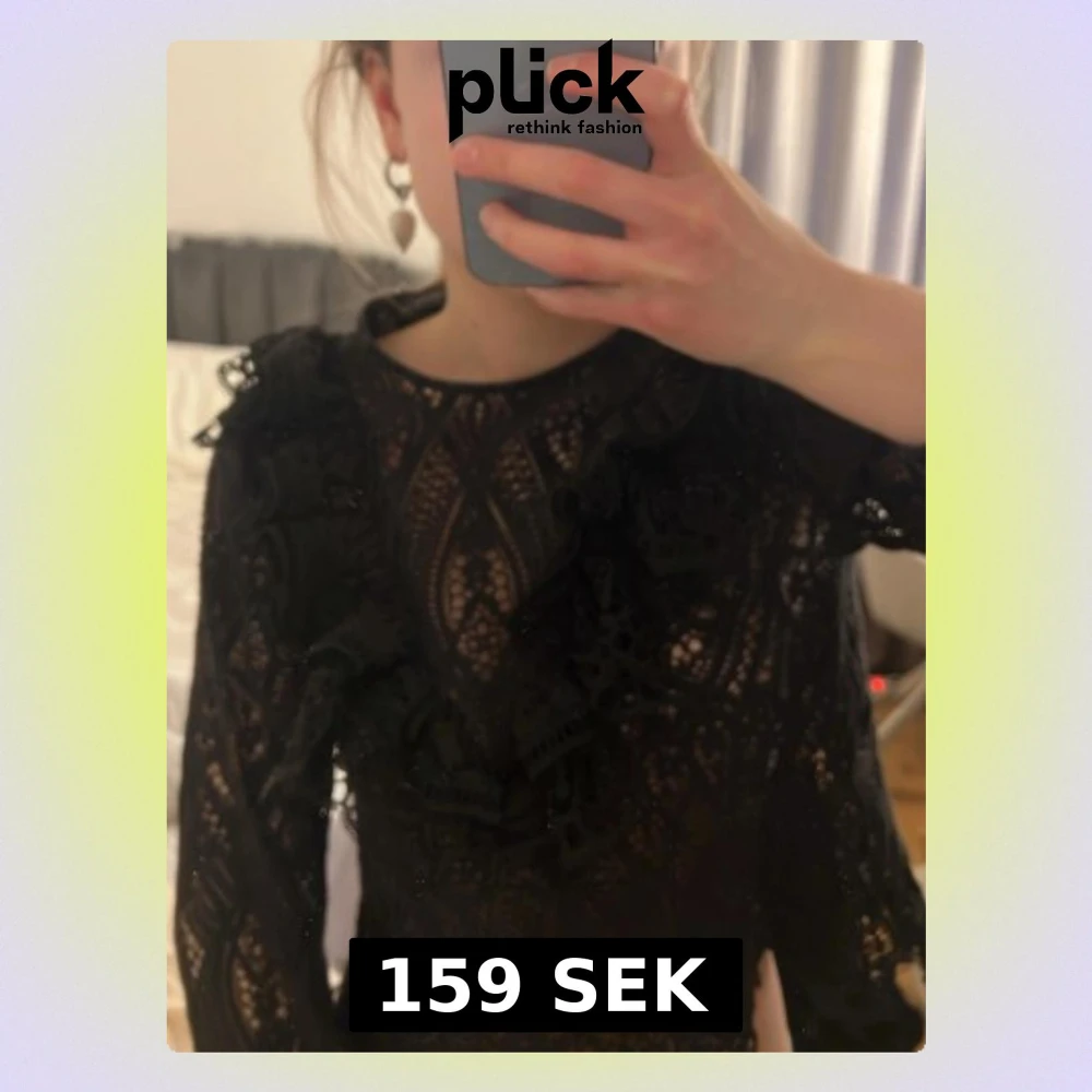 Svart spetsblus med volangdetaljer❤️