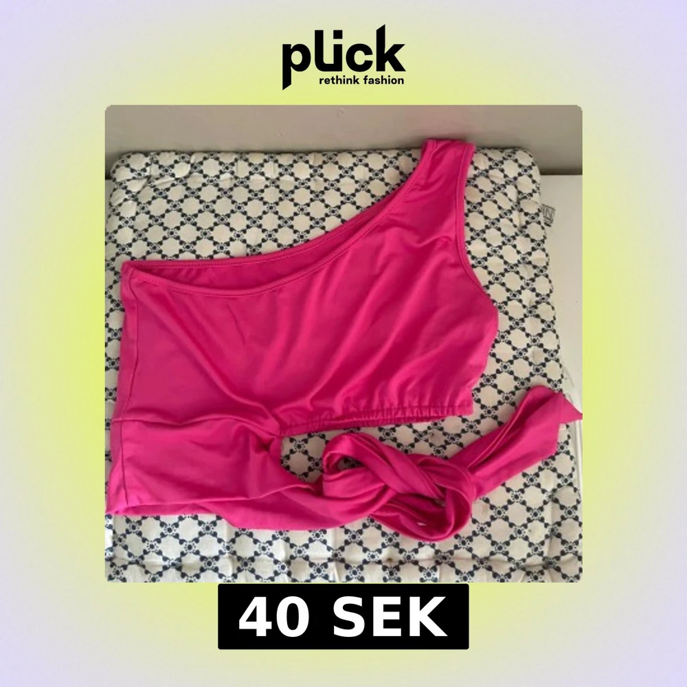 Säljer en snygg rosa one shoulder topp med knyt i sidan. Toppen är croppad och har en modern, asymmetrisk design som passar perfekt till sommaren.