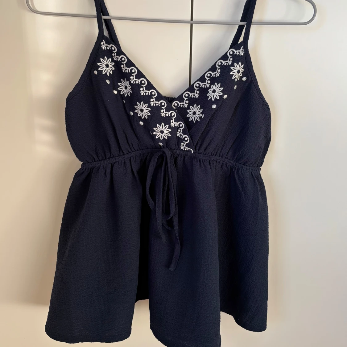 Jättegulligt blus-linne i marinblå💕 Storlek xs och banden går att spänna💕