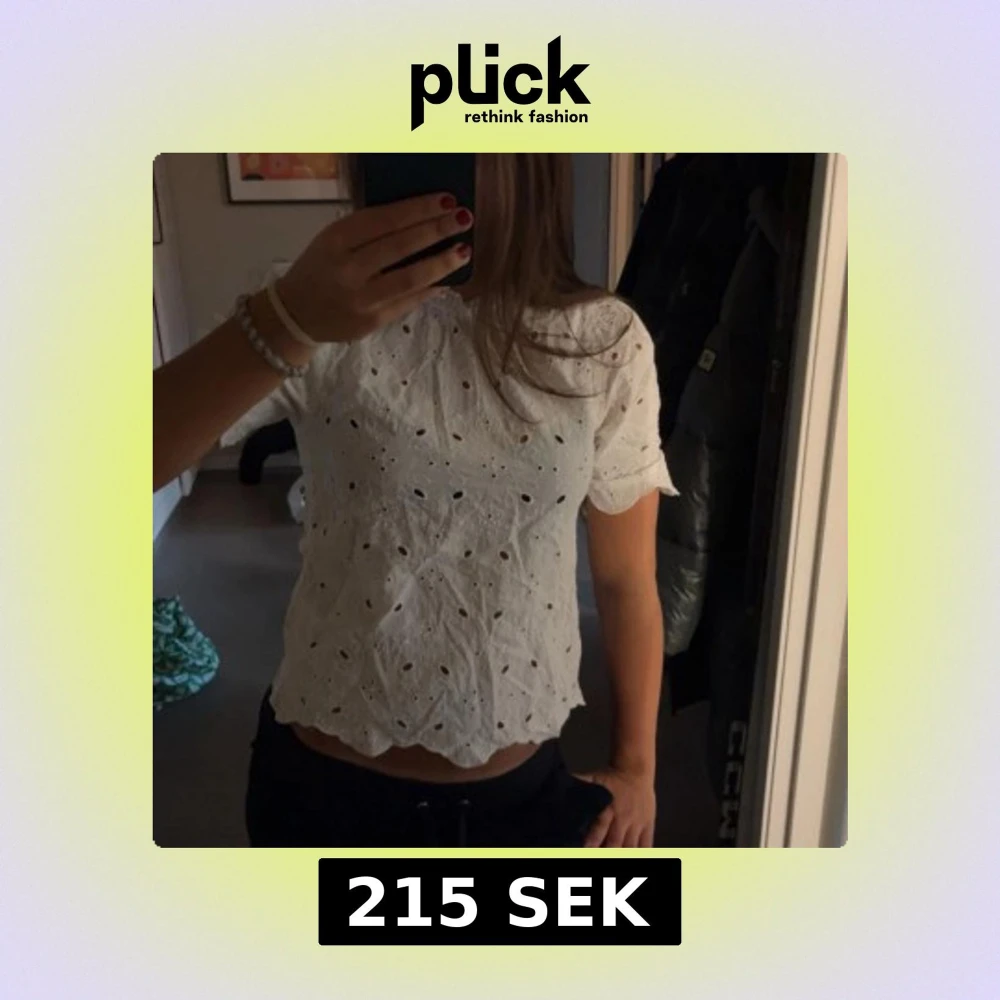 Superfin vit blus från Holly & Whyte i storlek XS. Blusen har korta ärmar, broderade detaljer och hålmönster över hela tyget. Den har en söt, vågig kant nertill och är gjord i bomull. Perfekt för en fräsch look! 🥰
