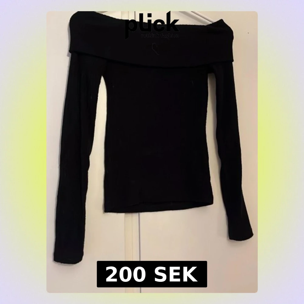 Trendig svart offshoulder topp med långa ärmar och tight passform. Perfekt att styla med höga jeans eller kjol för en clean look. Mjuk och stretchig känsla, enkel att matcha med olika accessoarer.