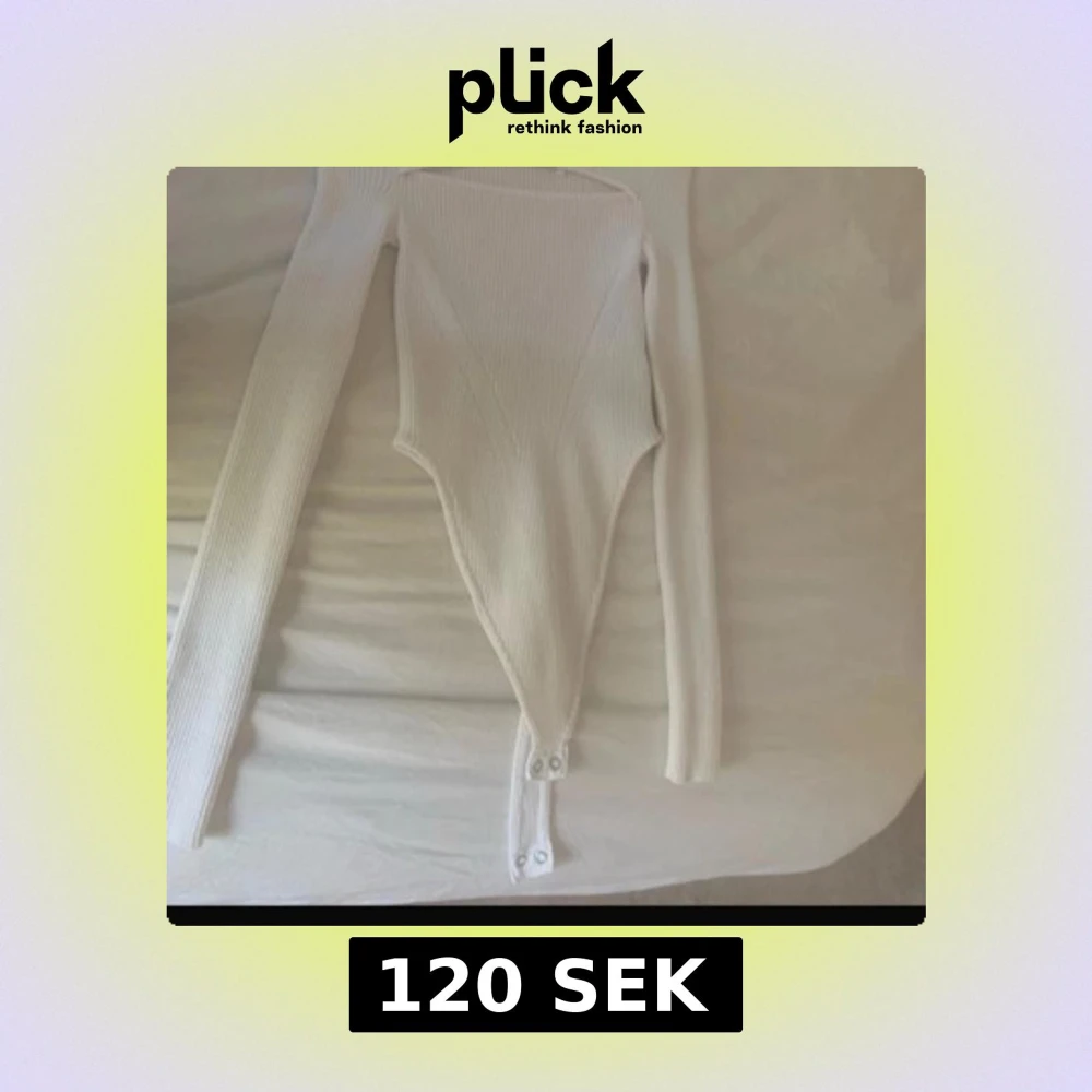 Säljer en vit ribbad bodysuit med långa ärmar och knäppning nedtill. Toppen har en tight passform och är tillverkad i ett stretchigt material som sitter snyggt på kroppen. Perfekt att styla med jeans eller kjol för en clean look.