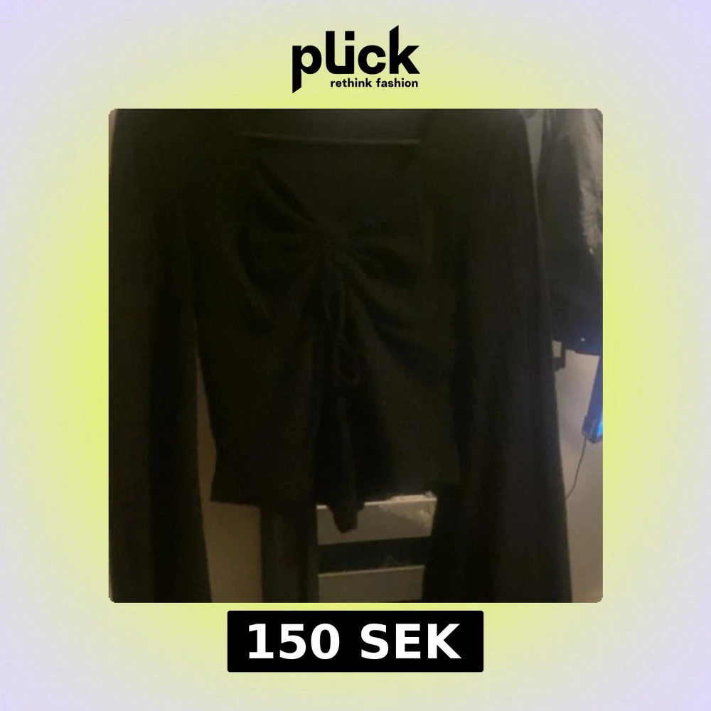 Snygg svart ribbad topp med långa ärmar och knytning framtill. Perfekt för en stilren look.