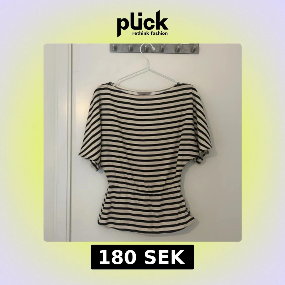Säljer en stilren randig blus i svart och vit med korta ärmar.