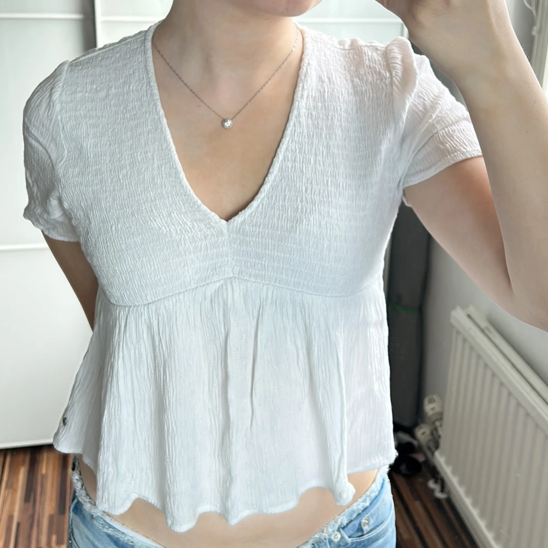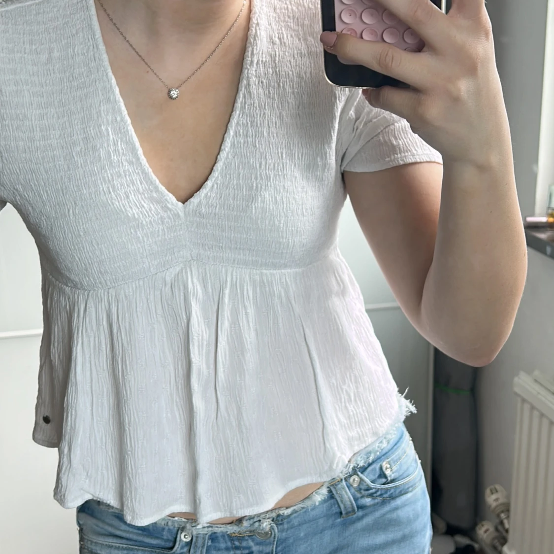 Supersöt vit blus med v-ringning. Köpt i spanien!