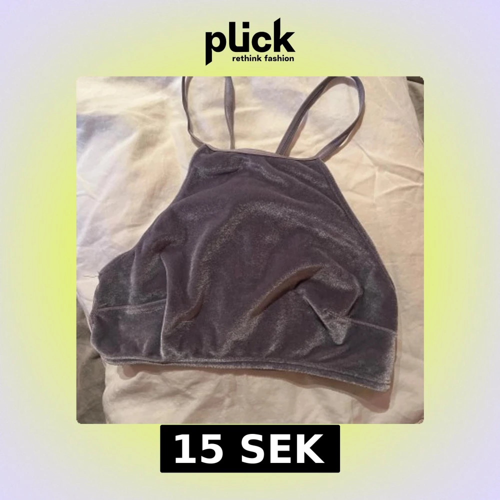Säljer en snygg lila sammetstopp med smala axelband och spetsdetaljer på baksidan.