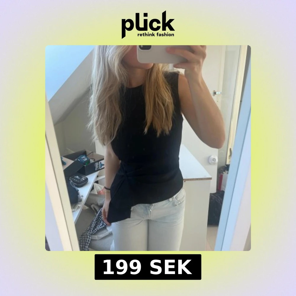 Snygg svart ärmlös topp med knyt i sidan.