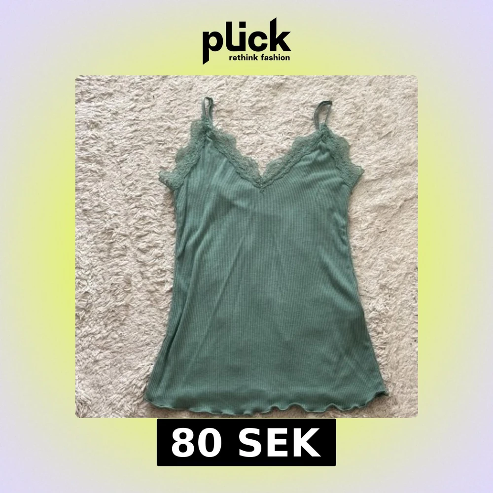 Supersöt ljusgrön ribbad linnetopp från Amisu med spetsdetaljer längs v-ringningen och tunna axelband. Toppen har vågig kant nertill och är perfekt för varma dagar eller lager på lager. Enkel att styla och ger en fräsch vibe till din outfit.