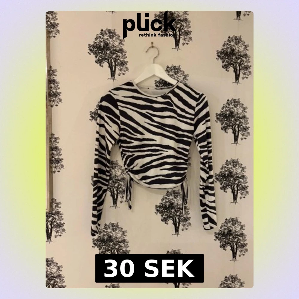 Säljer en långärmad topp med svartvitt zebramönster och snörning i sidorna. Modellen är croppad och har rund hals. Materialet känns mjukt och stretchigt, troligen polyester eller bomullsmix. Perfekt för dig som vill sticka ut med ett djurmönster.