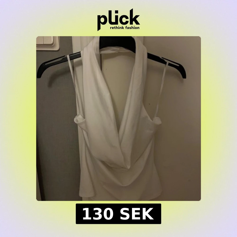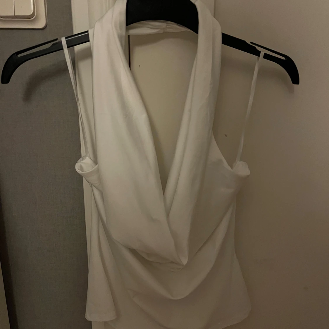 Säljer en vit linnetopp med djup v-ringad urringning och öppen rygg. Toppen har en snygg draperad front som ger en cool och trendig look. Perfekt för dig som gillar stilrena och enkla plagg med lite edge. Från Missäy och passar mig som bär XS/S❣️❣️aldrig använd