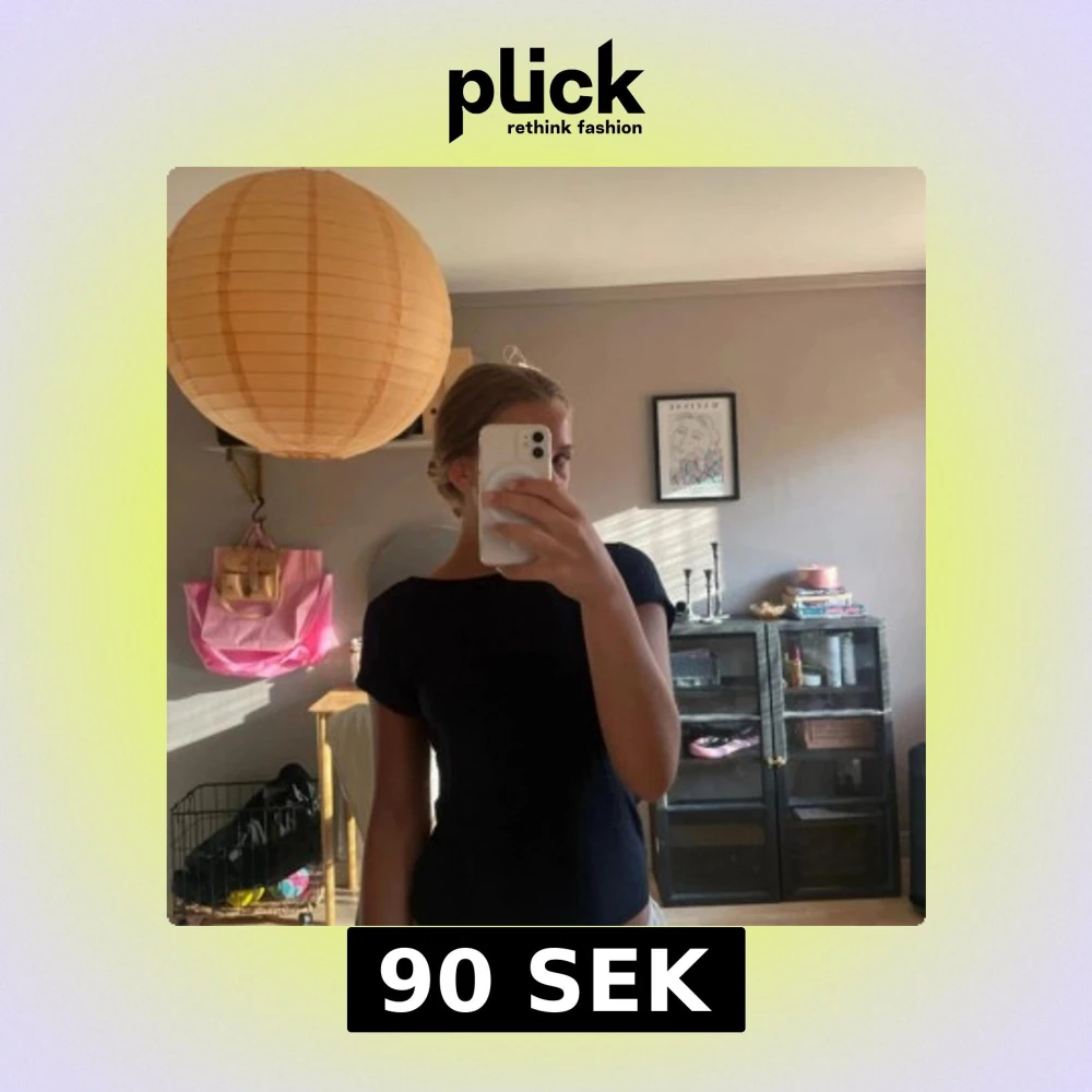 En svart, enkel topp i bomull med korta ärmar och snyggt djup, öppen rygg. Modellen är figurnära och passar perfekt till jeans eller kjol. Tidlös och stilren design som funkar året runt.
