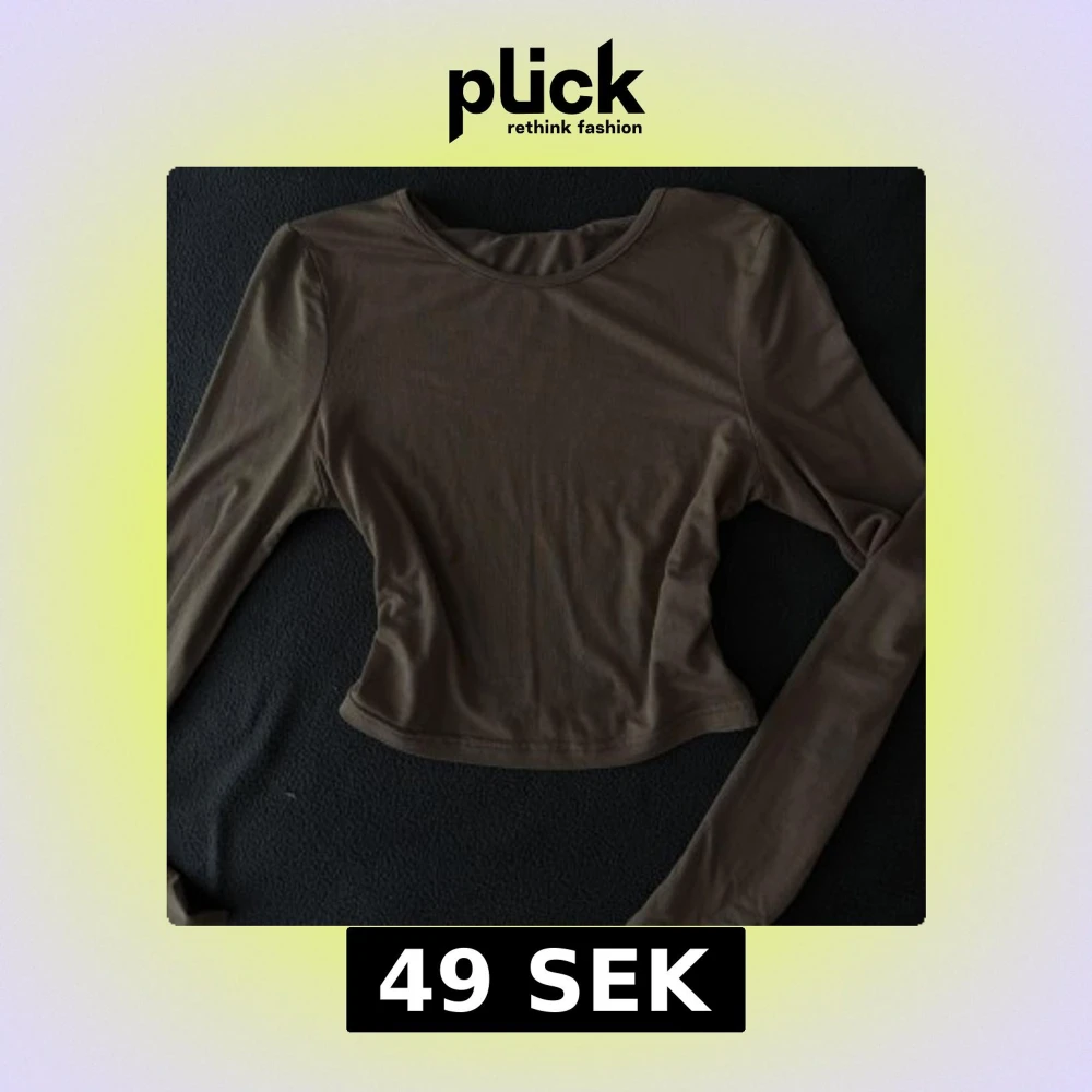 Snygg brun långärmad croppad topp med rund halsringning. Tunn och stretchig i materialet, perfekt att styla med jeans eller kjol. Enkel och stilren design som passar till många outfits.