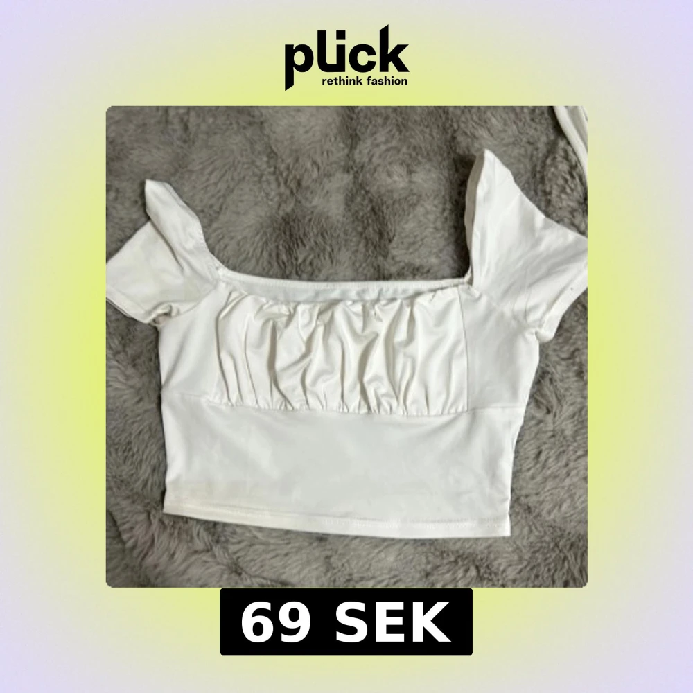 Säljer en söt vit topp med korta puffärmar och rynkad detalj framtill. Toppen är croppad och har en mjuk och bekväm passform. Perfekt för varma dagar!