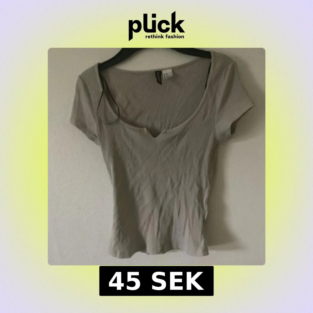 Säljer en beige ribbad topp från Divided med korta ärmar och snygg v-ringning. Toppen har en figurnära passform och är tillverkad i mjuk bomullsmix. Perfekt att matcha med jeans eller kjol för en enkel och stilren look.