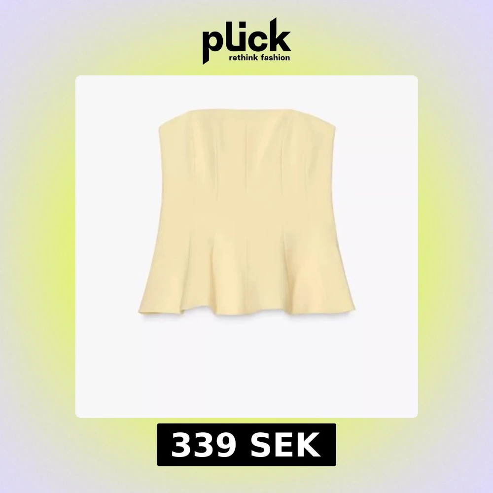Supersnygg ljusgul korsett-topp med axelbandslös design och utsvängd nederdel. Toppen har en stilren och modern look som ger en cool siluett. Perfekt att styla med jeans eller kjol för en trendig vibe.