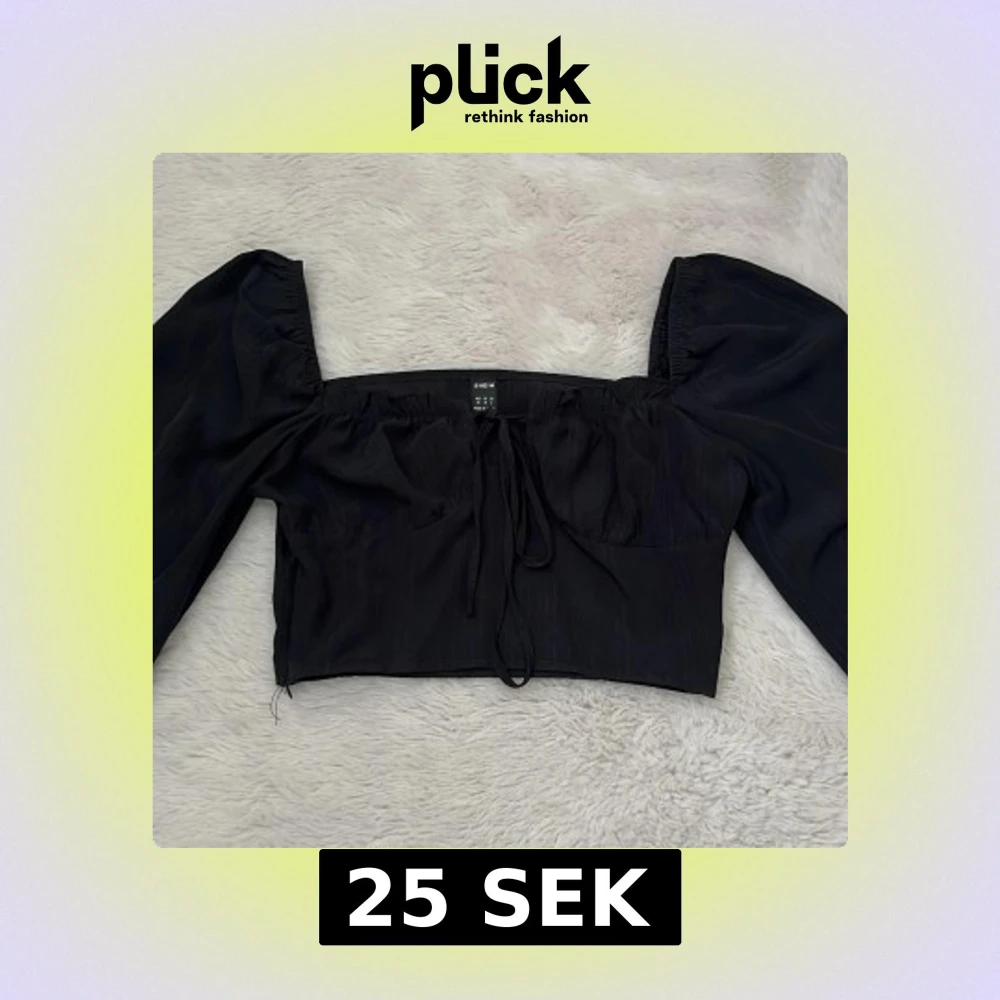 Trendig svart croppad topp från SHEIN med långa puffärmar och knytning framtill. Toppen har en fyrkantig urringning och är tillverkad i ett lätt, syntetiskt material..