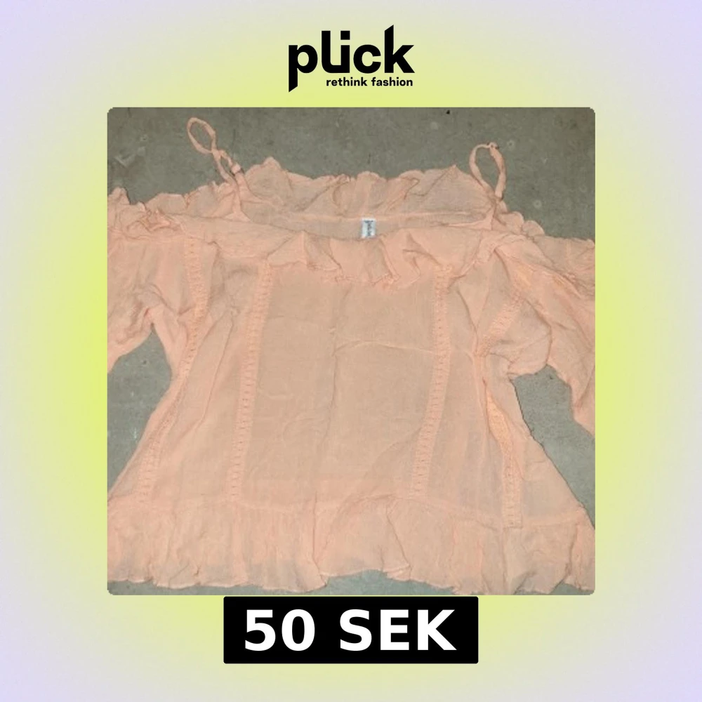 Säljer en söt persikofärgad blus från FB.Sister med volangdetaljer och offshoulder-design. Blusen har tunna axelband och är tillverkad i ett lätt och luftigt material, perfekt för varmare dagar.
