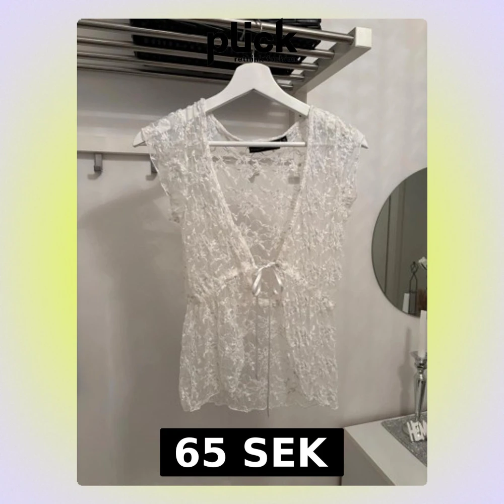 Superfin vit blus i spets med v-ringning och knyt framtill. Blusen är ärmlös och har ett romantiskt, transparent utseende med blommiga spetsdetaljer. Perfekt att styla lager på lager eller som den är för en trendig look.