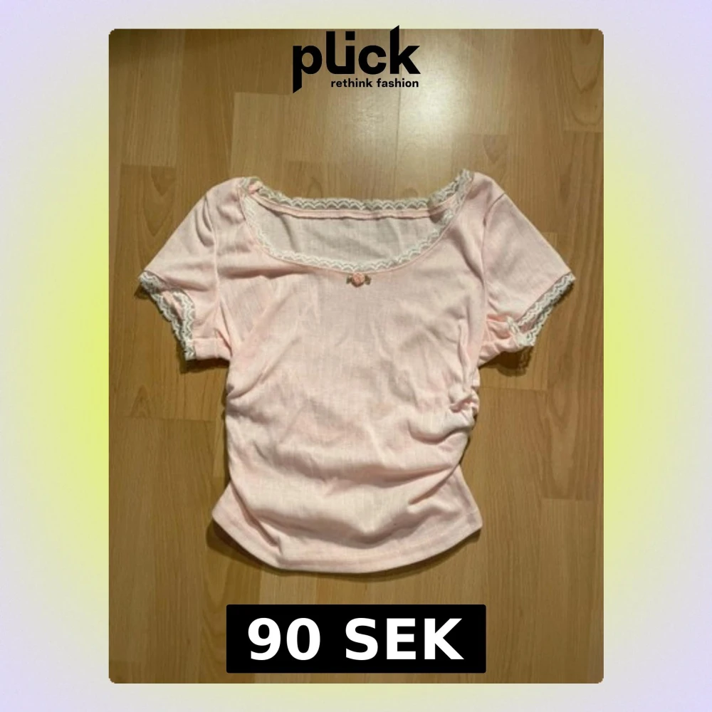 Ljusrosa topp från SHEIN med korta ärmar och spetsdetaljer vid halsringning och ärmslut.