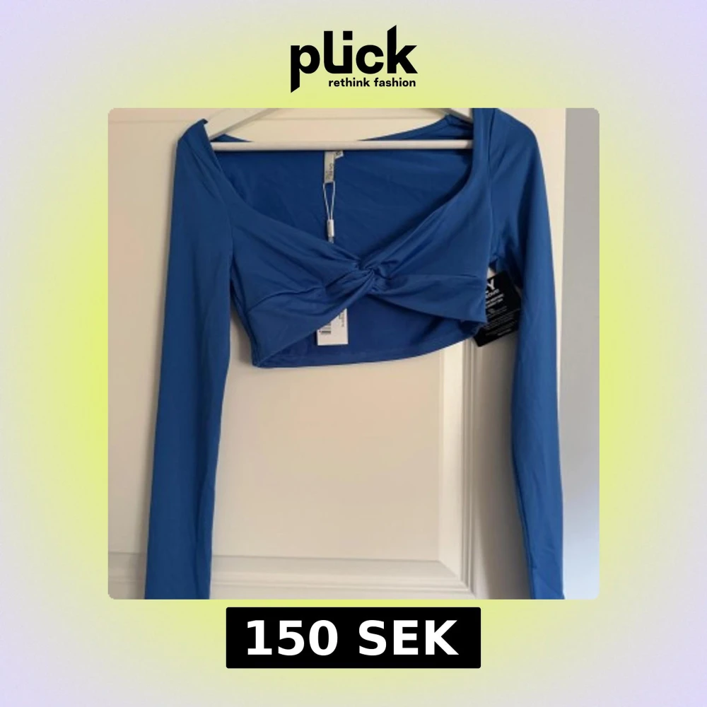 Snygg blå croppad topp från NLY Trend i storlek XS. Toppen har lång ärm och en cool twistad detalj framtill som ger en unik look. Tillverkad i mjuk polyester med stretch för skön passform. Perfekt att styla med höga jeans eller kjol för en trendig vibe.