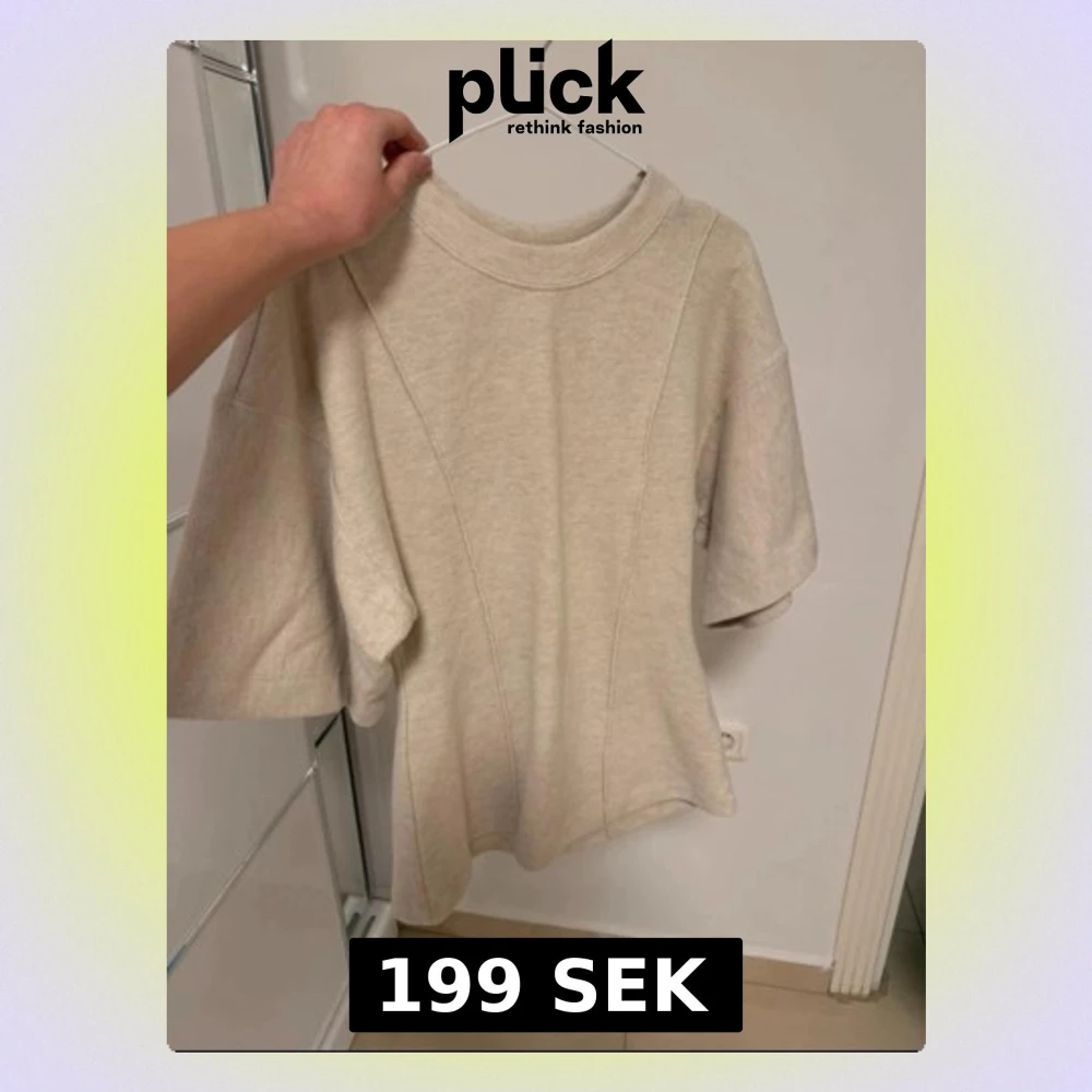 Trendig beige topp med oversized passform och vida, halvlånga ärmar. Tillverkad i ett mjukt, tjockare material med dekorativa sömmar framtill. Rund halsringning och minimalistisk design som passar till många stilar.