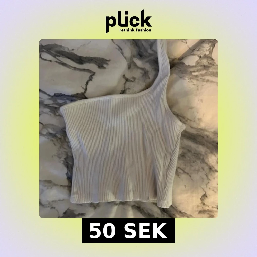 Snygg vit ribbad topp med oneshoulder-design. Perfekt för en stilren och modern look. Toppen är croppad och passar utmärkt till både jeans och kjol.