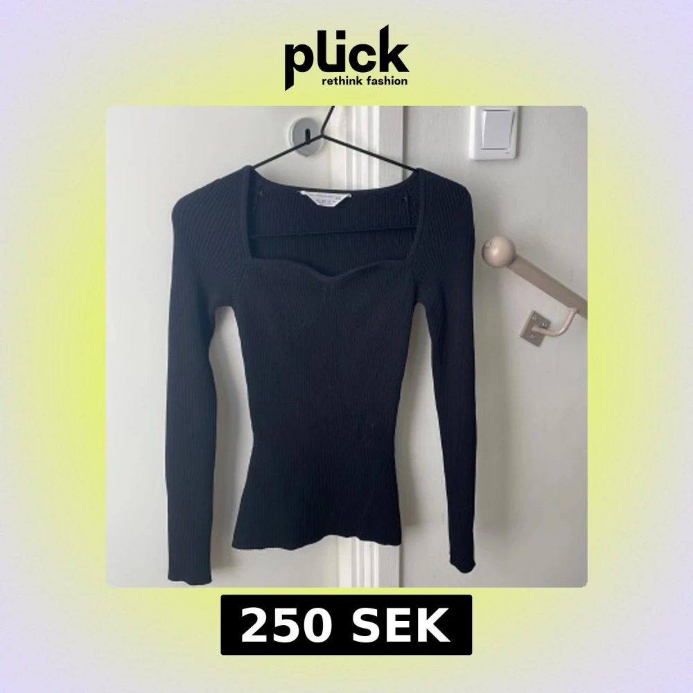 Säljer en svart långärmad topp från Primark Edit i storlek XS. Toppen är ribbad med en snygg fyrkantig urringning och figurnära passform. Perfekt att styla med jeans eller kjol Pris går att diskutera